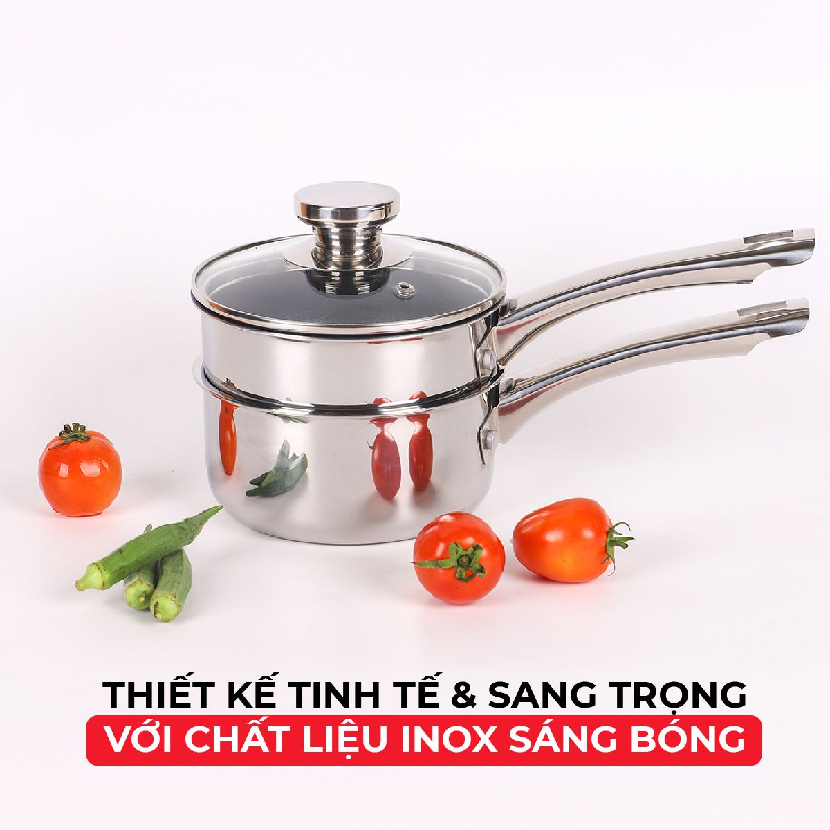 Bộ nồi chảo được làm từ inox 316 nên có độ sáng bóng, hiện đại.