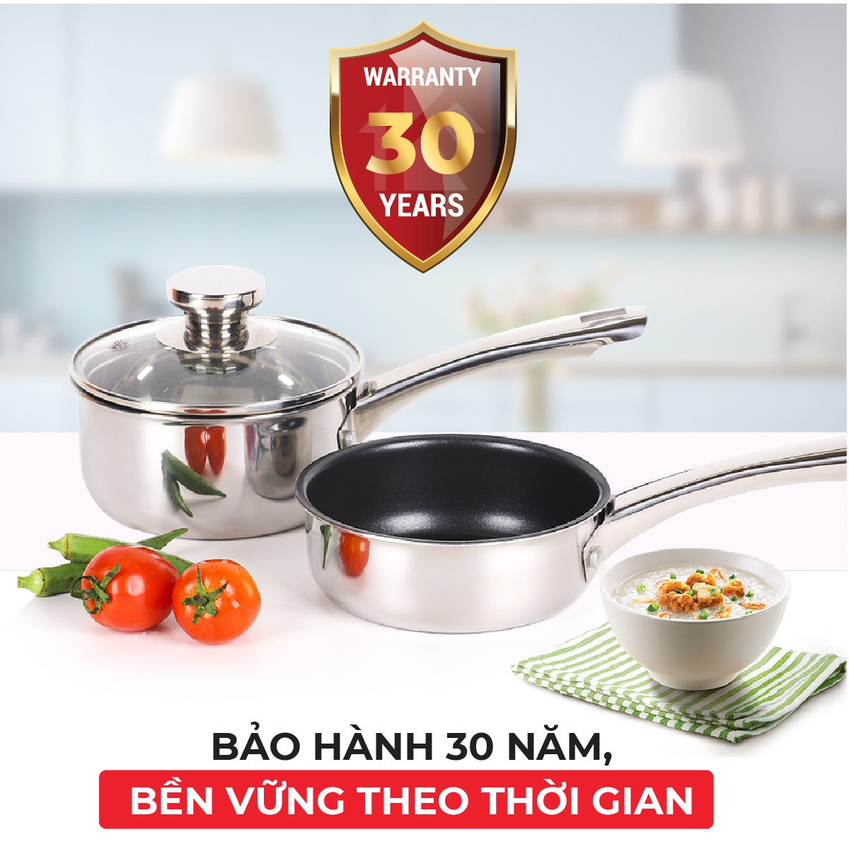 Bộ sản phẩm gồm 1 nồi/quánh và 1 chảo