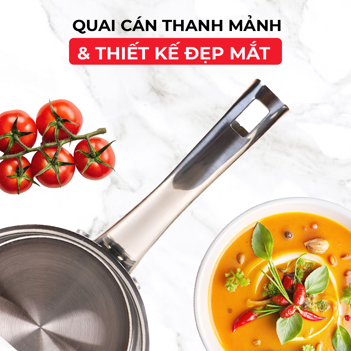 Quai cầm thanh mảnh, nhẹ nhàng nhưng kết cấu vô cùng chắc chắn.