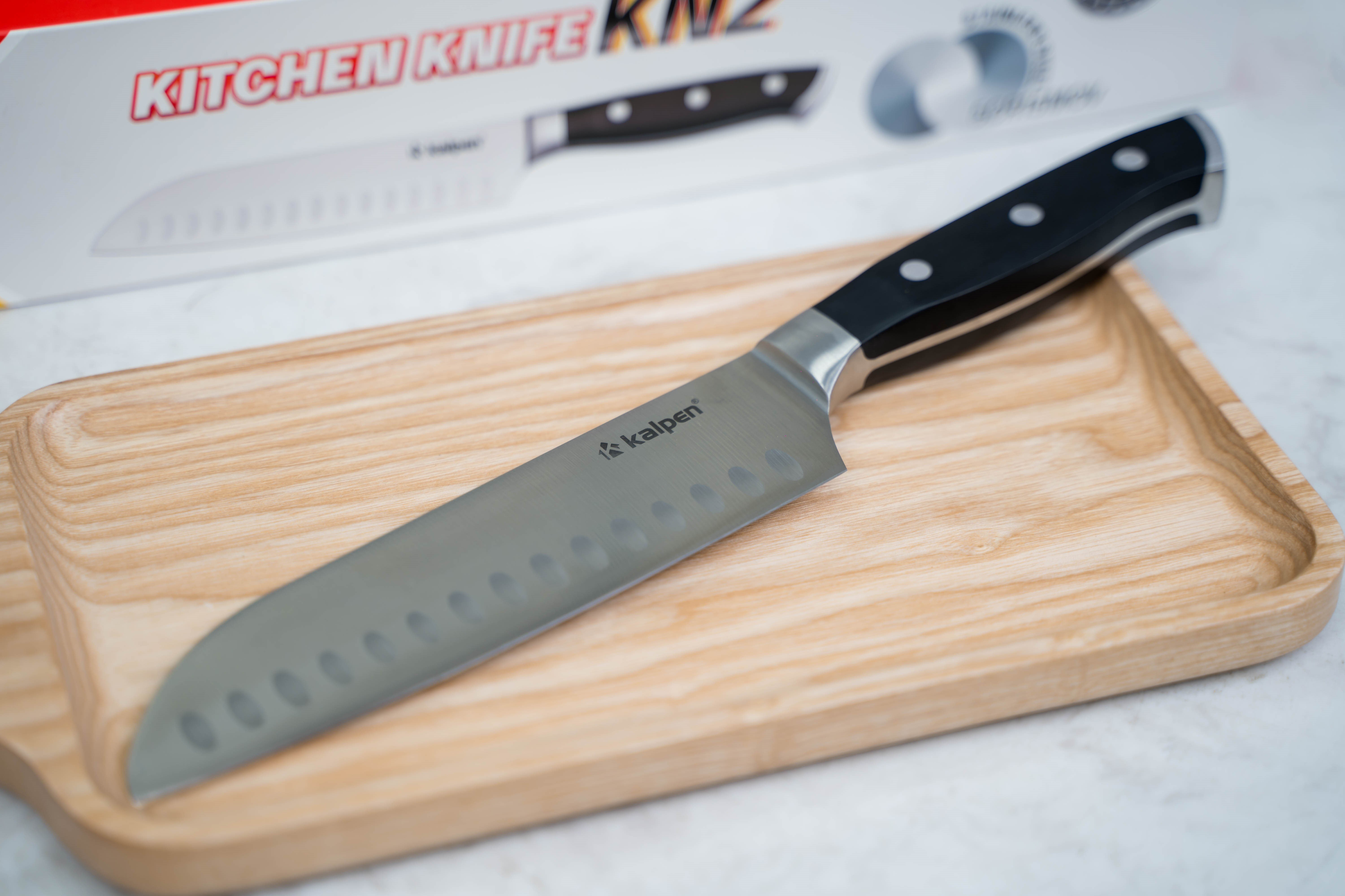 Dao thái thịt Kalpen KN2 với lưỡi dao dài 178mm được thiết kế khe ở lưỡi, các khe lõm thoát khí này có chức năng giúp cho khi thái thịt không cho thực phẩm dính vào lưỡi dao. Nhờ thế mà người sử dụng có thể thái lát thực phẩm một cách nhanh chóng và liên tục mà không cần phải dừng lại để gỡ thịt, cá bám dính vào lưỡi dao.