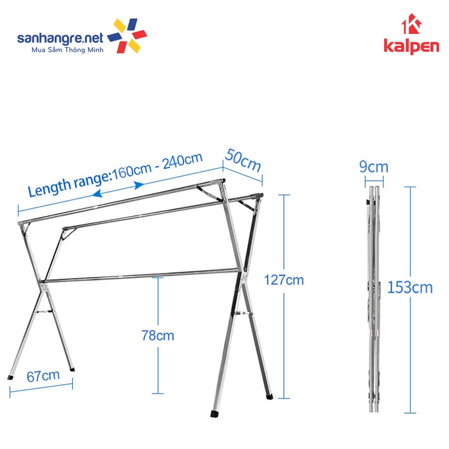- Thiết kế khung hình chữ X theo nguyên lý cơ học, cho khả năng chịu lực tốt hơn khi phơi khăn,màn, chăn, quần áo.