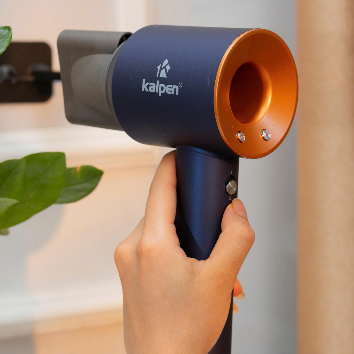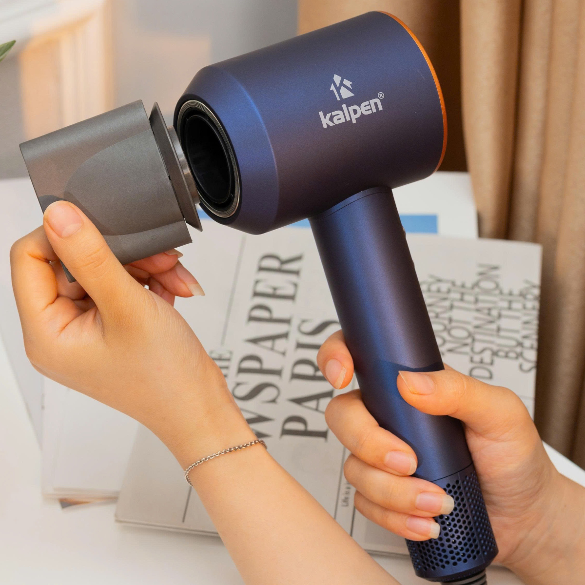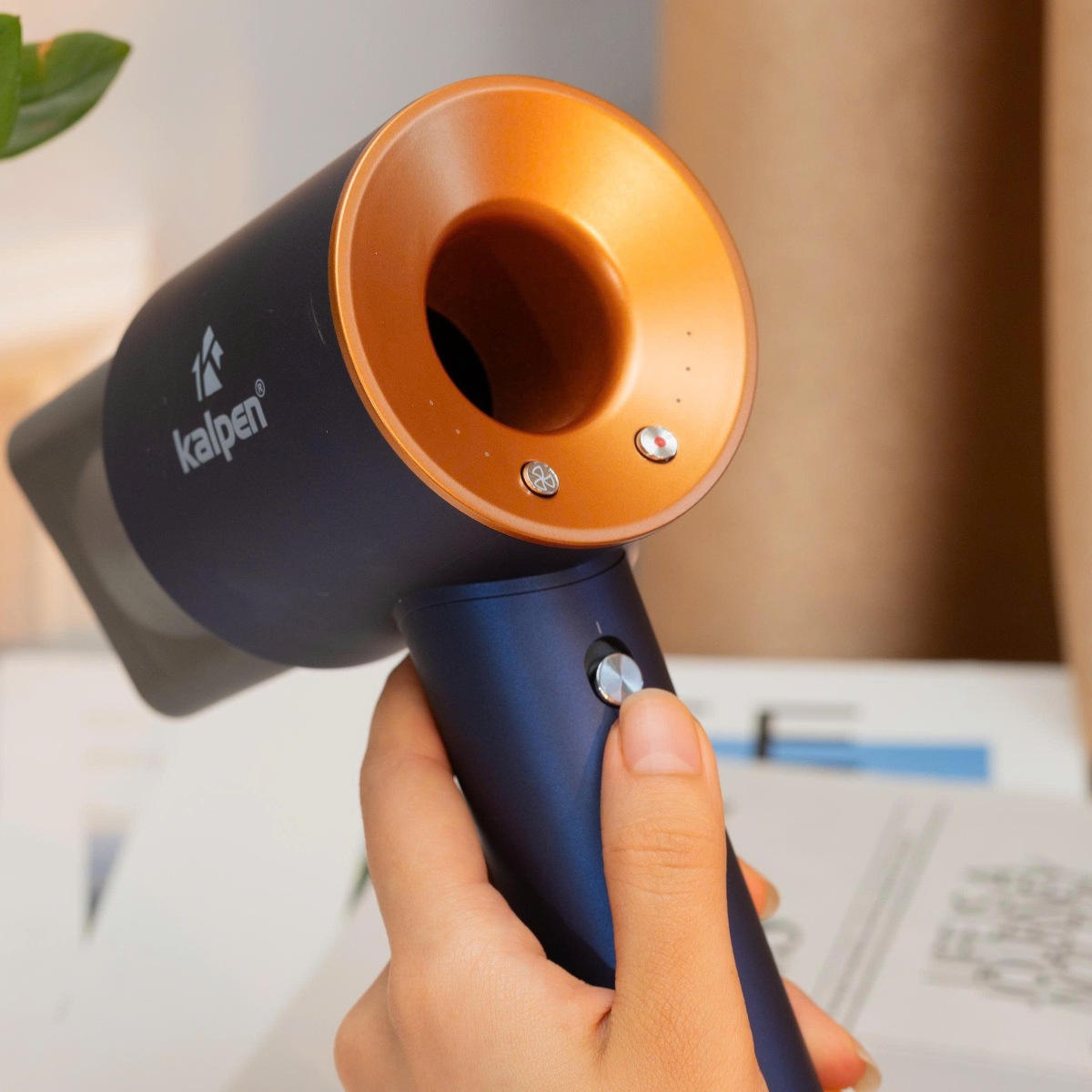 Máy sấy tóc tạo kiểu Kalpen sử dụng động cơ không chổi than DC hiện đại với tốc độ quay lên đến 110.000 vòng/phút, cho khả năng thổi gió mạnh mẽ với hai cấp độ gió: