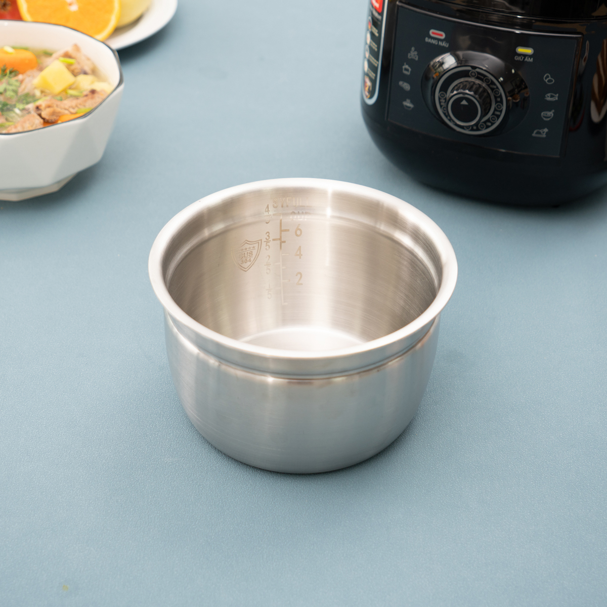 Không chỉ vậy, inox 304 còn nổi bật với khả năng chống ăn mòn, dễ dàng vệ sinh và duy trì độ bền bỉ lâu dài, biến nồi áp suất điện Kalpen P7 trở thành người bạn đồng hành đáng tin cậy trong căn bếp hiện đại.