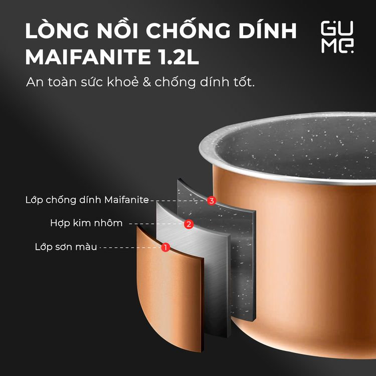 Khám phá sự khác biệt với lòng nồi Maifanite độc quyền từ Gume , mang đến những chén cơm hoàn hảo và an toàn cho sức khỏe gia đình bạn. Lớp phủ Maifanite tự nhiên không chỉ đảm bảo cơm không bám đáy hay cháy khét, giúp việc vệ sinh trở nên cực kỳ dễ dàng.