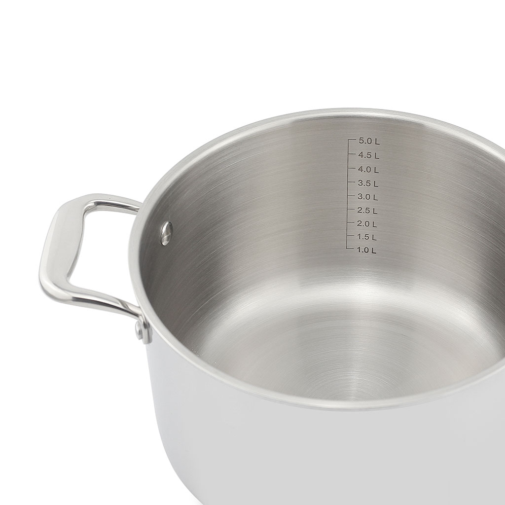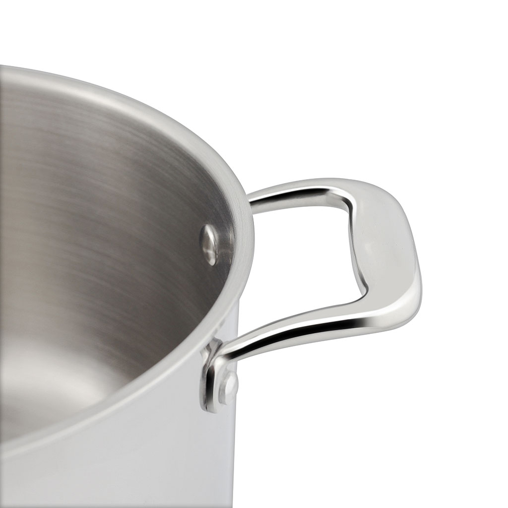 Nằm chính giữa là lớp nhôm dày. Đây là chất liệu truyền – giữ nhiệt tuyệt vời. Với việc bổ sung lõi nhôm, nồi Trimax XS có thể phân bổ nhiệt nhanh chóng, đồng đều.
