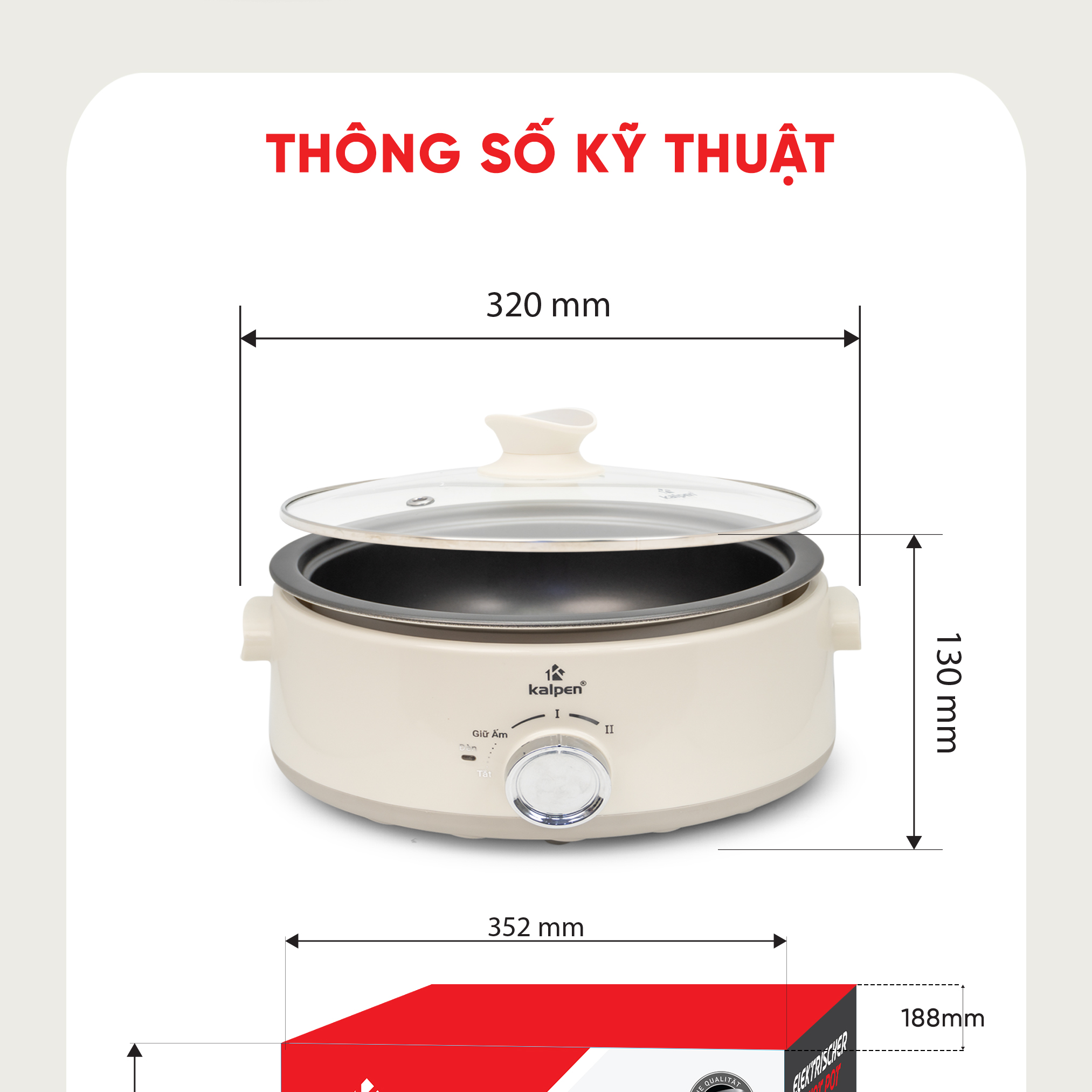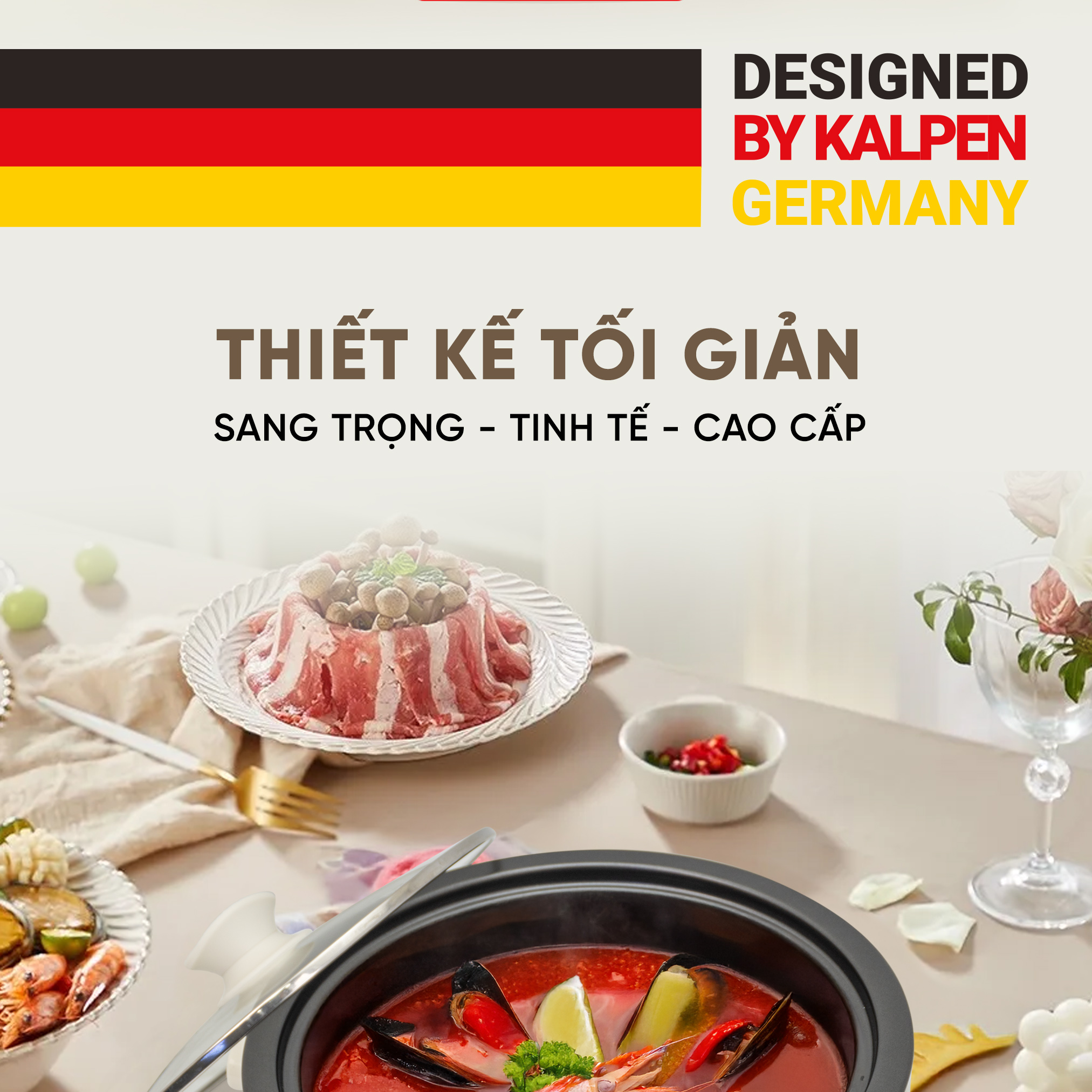 Nổi lẩu điện Kalpen 5L là sản phẩm đạt chuẩn châu Âu. Với nồi lẩu điện Kalpen 5L bạn không chỉ thấy bóng dáng một món đồ gia dụng nhà bếp của phương Tây trong căn bếp của gia đình Việt mà điều đặc biệt đó chính là chất lượng sản phẩm cao cấp, sang trọng và an toàn đối với sức khỏe của chính người tiêu dùng.