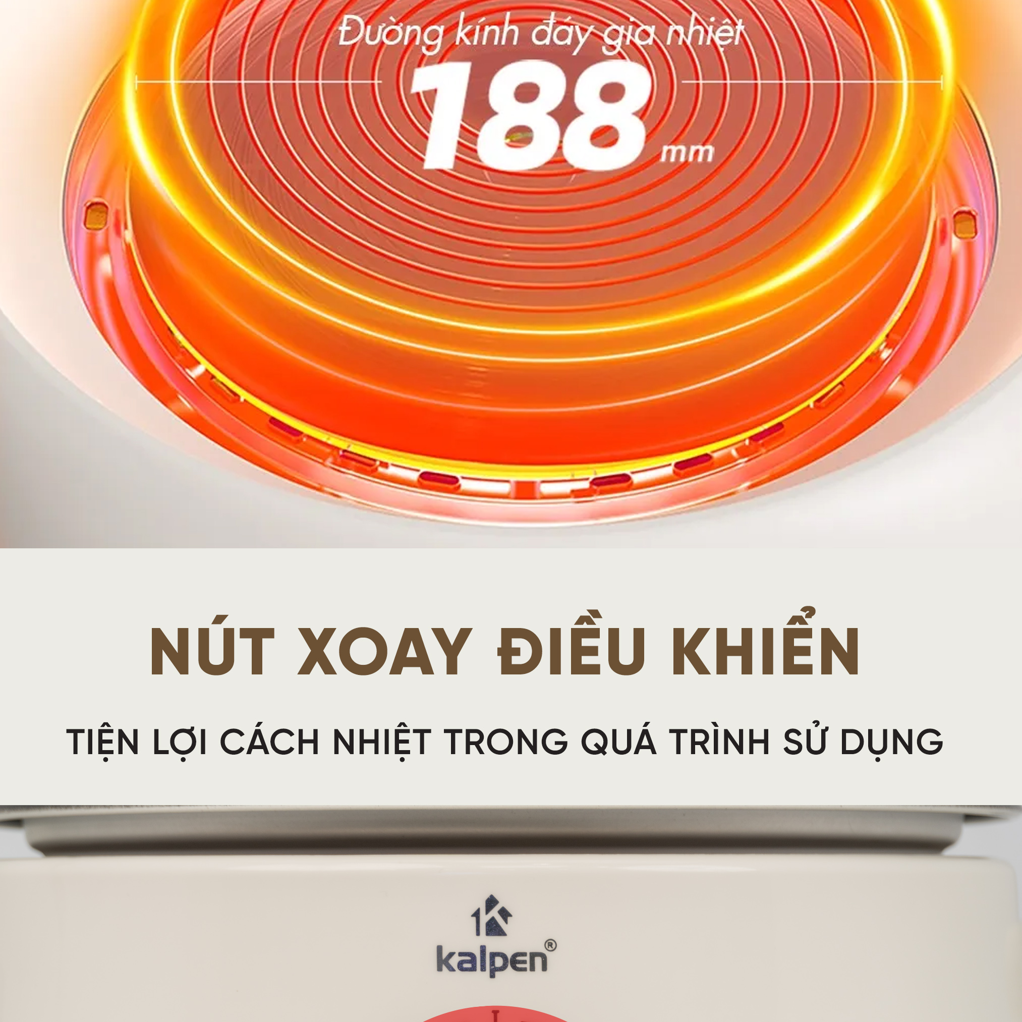 Tay cầm nồi lẩu điện Kalpen 5L được thiết kế góc cạnh và cách nhiệt giúp cho việc nâng nhấc và di chuyển nồi được thuận tiện, chắc chắn không lo bị nóng bỏng hay trơn trượt.