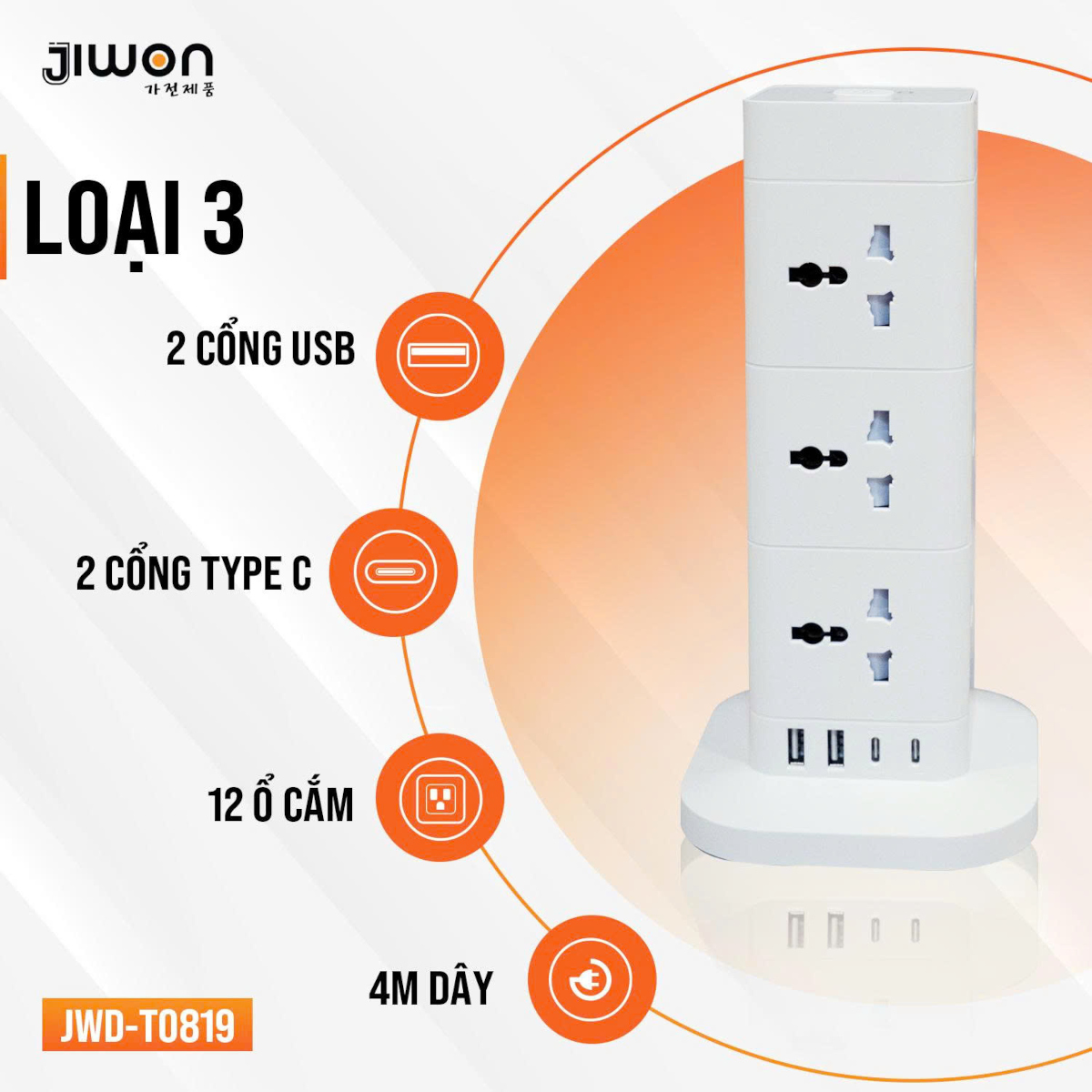 - Tiết kiệm không gian: Thay vì nhiều ổ cắm đơn lẻ và củ sạc rườm rà, Ổ CẮM ĐIỆN JIWON tích hợp mọi thứ bạn cần trong một thiết bị nhỏ gọn.