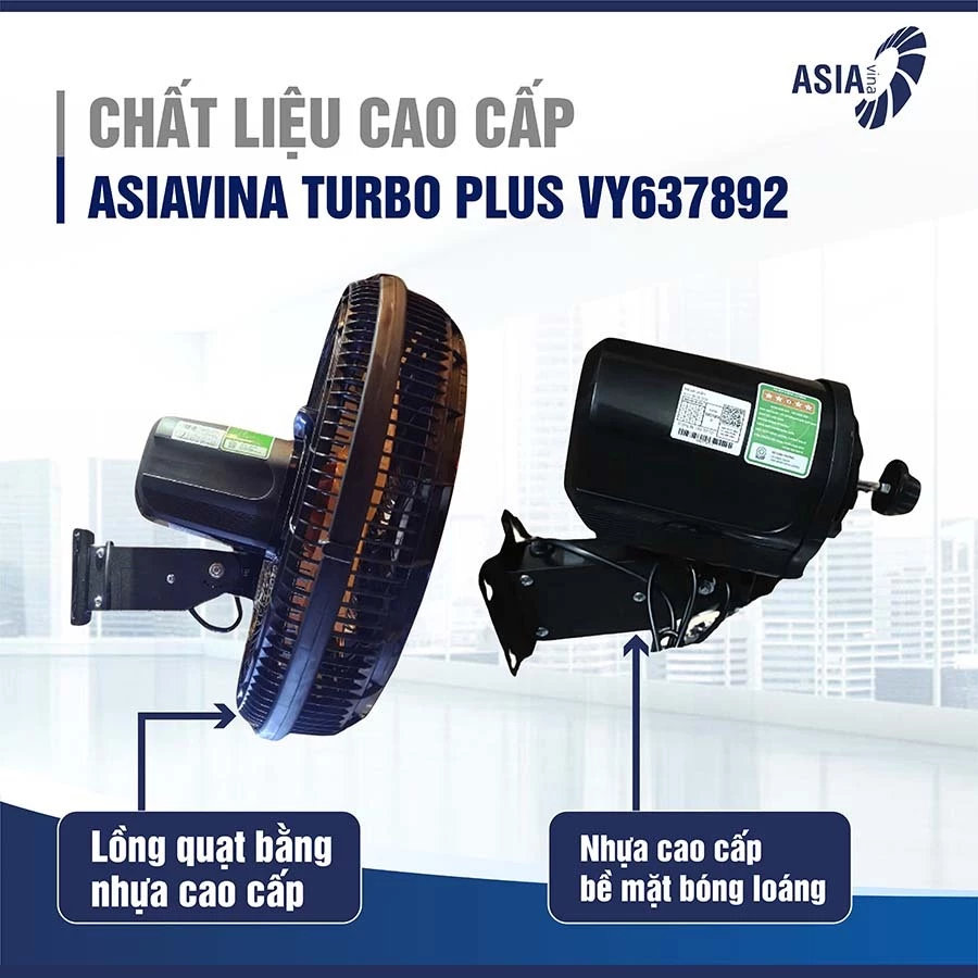 🔥 Quạt treo tường ASIAVINA Turbo Plus cho luồng gió mạnh, tản rộng – mát nhanh không gian lớn. 90W, motor dây đồng, cánh 40cm 6 cánh, 4 tốc độ chỉnh bằng nút vặn, lồng nhựa cao cấp an toàn – bền.